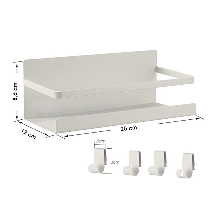 Magnetyczna półka na lodówkę Organizer na przyprawy 4 haczyki biała