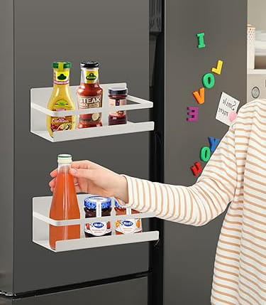 Nasza półka na przyprawy to doskonałe rozwiązanie dla osób, które chcą optymalnie zagospodarować swoją kuchnię. Montaż na lodówce lub innej metalowej powierzchni pozwala zaoszczędzić cenne miejsce na blacie wykorzystywane do przygotowywania potraw. Dzięki półce na przyprawy, które wcześniej zajmowały miejsce w szafkach lub były gromadzone po blacie, mogą teraz być trzymane w jednym, łatwo dostępnym miejscu. To nie tylko ułatwia utrzymanie porządku, ale także zwiększa efektywność pracy w kuchni – wszystko, czego potrzebujesz, znajduje się w zasięgu ręki.
