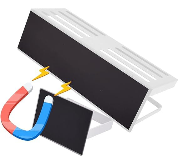 Jednym z największych atutów półki jest łatwość montażu. Wystarczy przyłożyć ją do metalowej powierzchni, a dzięki silnym magnesom produkt natychmiast trzyma się stabilnie i bezpiecznie. Brak konieczności użycia narzędzi czy dodatkowych elementów montażowych sprawia, że półkę da się łatwo przenieść w inne miejsce lub zmienić jej położenie bez obawy o uszkodzenie powierzchni, do której została przytwierdzona.