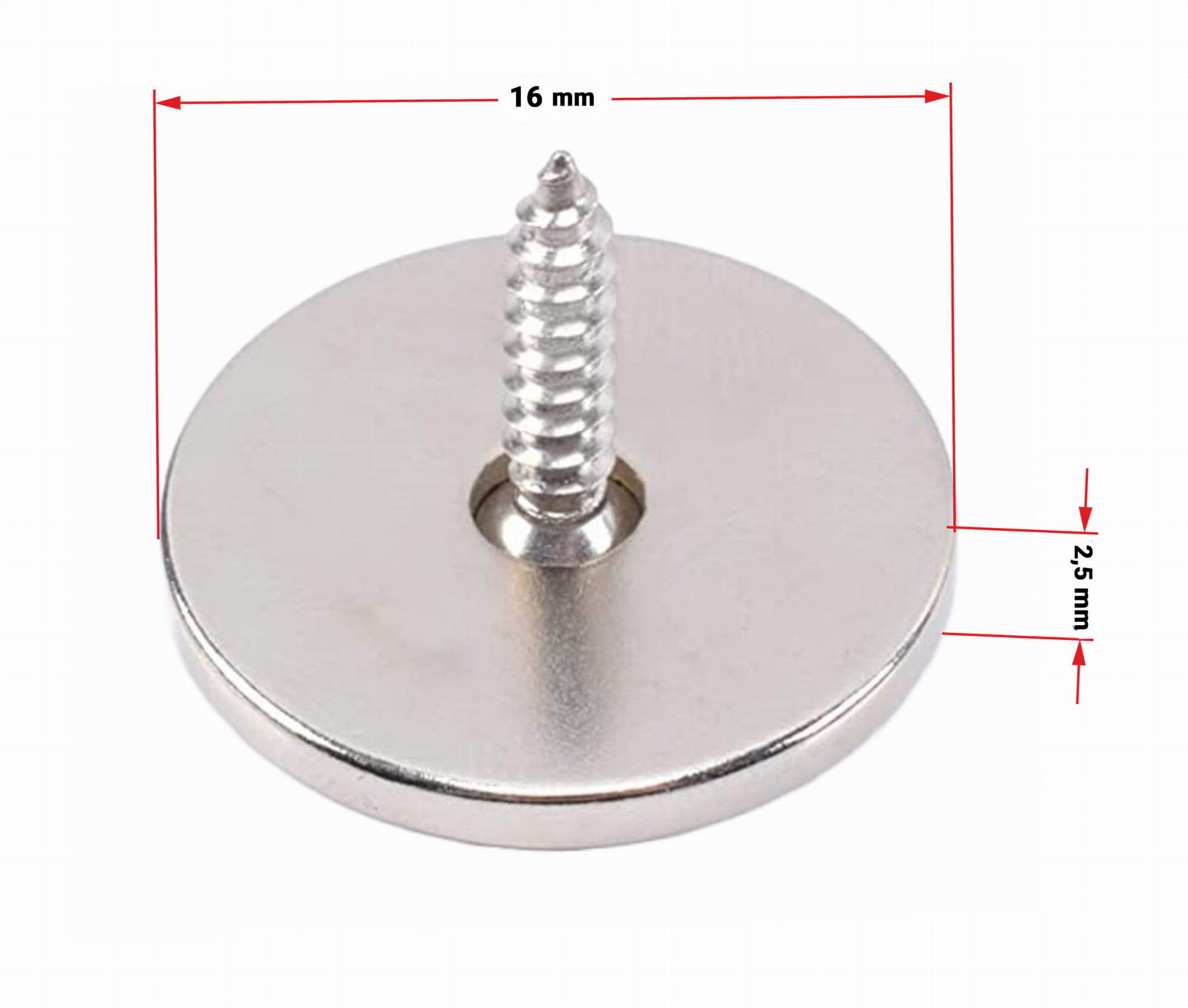 Zastosowanie: podkładka nadaje się do łączenia ze wszystkimi naszymi magnesami neodymowymi o średnicy 16 mm (+/- 2mm).