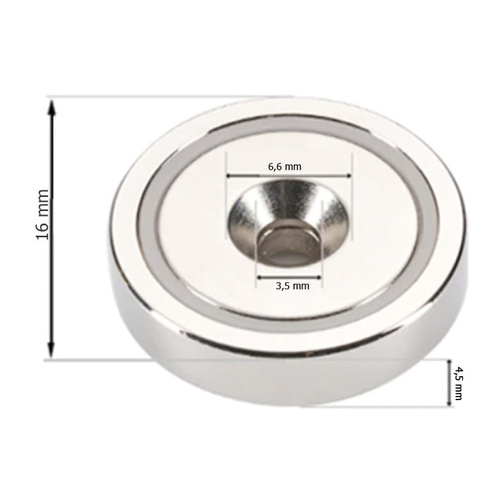 Magnes neodymowy obudowany pod wkręt 16x4,5mm jest idealnym rozwiązaniem dla osób szukających mocnych, wytrzymałych i precyzyjnych rozwiązań montażowych. Stalowa obudowa, wyjątkowa siła przyciągania oraz wszechstronność zastosowań sprawiają, że cechuje się wysoką funkcjonalnością.