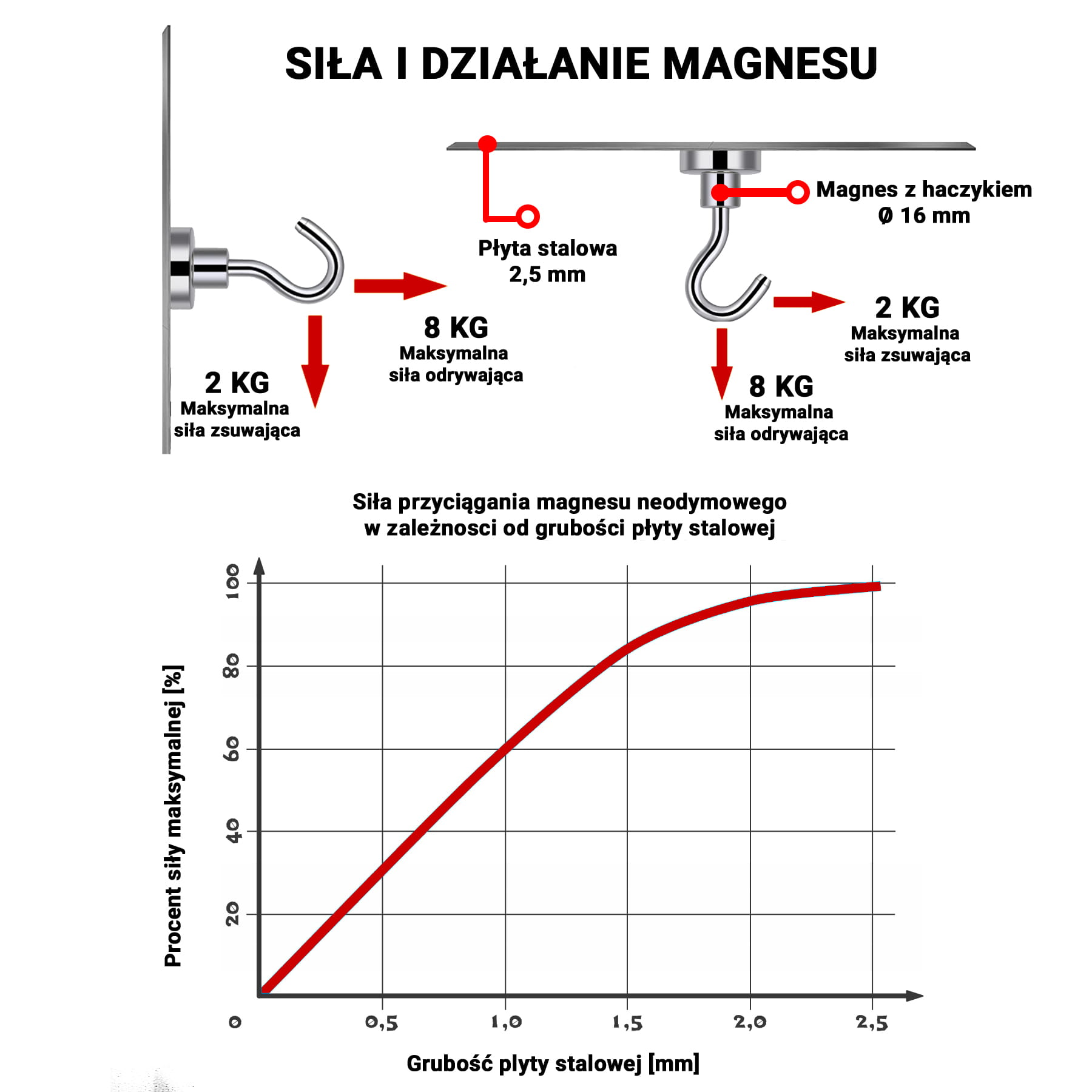 ✅ UDŹWIG: ~8 kg (na finalny udźwig wpływa wiele czynników, sugerujemy przetestować magnes w danych warunkach)