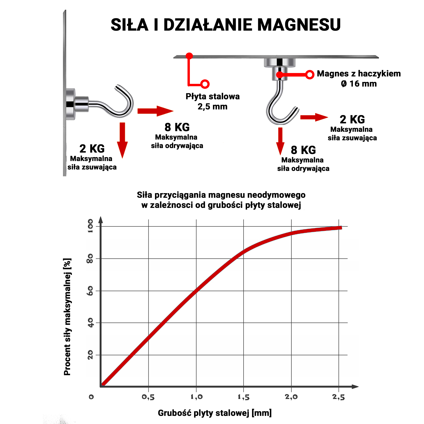 ✅ Podana siła udźwigu została zmierzona przy odrywaniu prostopadłym i równoległym na 2, 5 mm płycie stalowej.