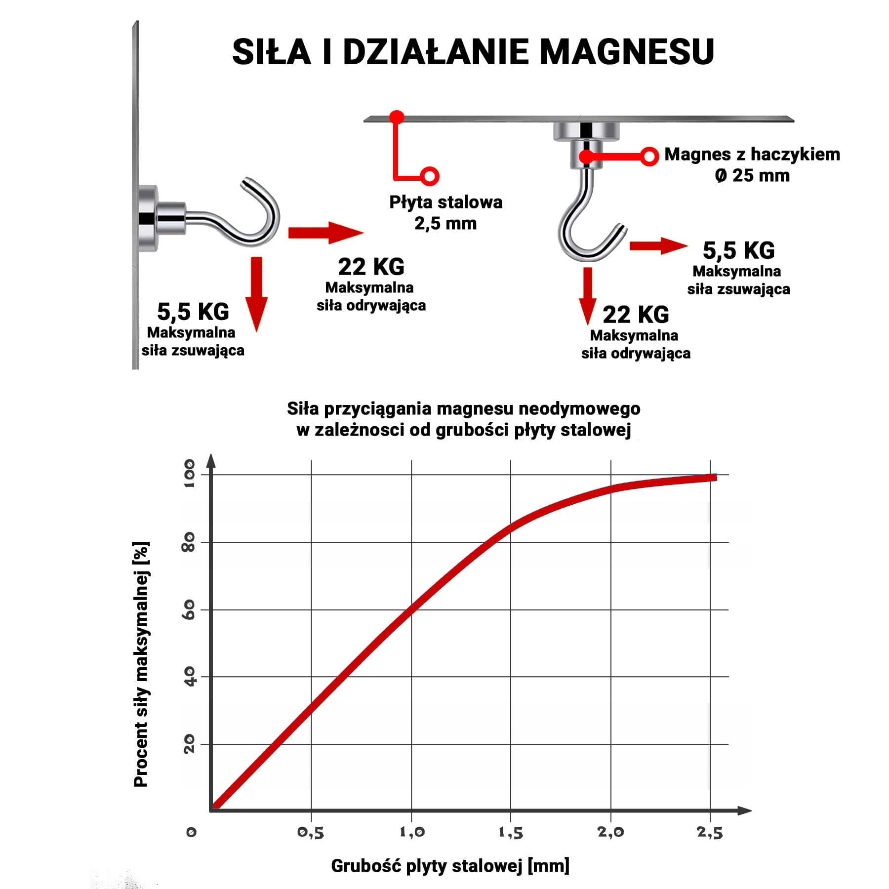 ✅ UDŹWIG: do 22 kg (na finalny udźwig wpływa wiele czynników, sugerujemy przetestować magnes w danych warunkach)
